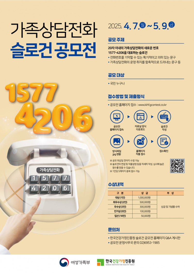 | 가족상담전화 1577-4206 슬로건 공모전 (0) | 2025.05.08 |